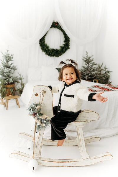 A Santa mini session can vary depending on the amount of children and their level of comfort with Santa. This session consists of various activities together and it completely child led. If your kiddo isn't into Santa then we are absolutely able to do this session without Santa. This is a previous set and we use a new one every year!
